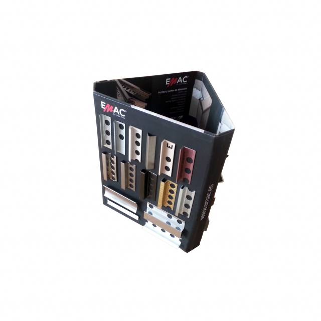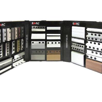 Carpetas - Displays muy destacadas por su fácil manejo y transporte que permiten mostrar la colocación de nuestros perfiles. Prácticamente toda la gama Emac® se ve representada en estos displays. Están diseñados para estar presentes en las más selectas exposiciones.