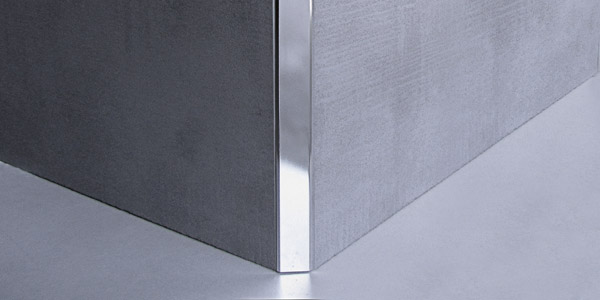 El diseño del perfil, de cara vista a 45º y con bordes suavizados, permite evitar los cantos vivos en las paredes y se integra perfectamente con la cerámica más actual.