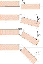 El perfil Novocanto® Azulejo permite su instalación en esquinas de ángulos comprendidos entre 0º y 45º, como se muestra en la imagen:
