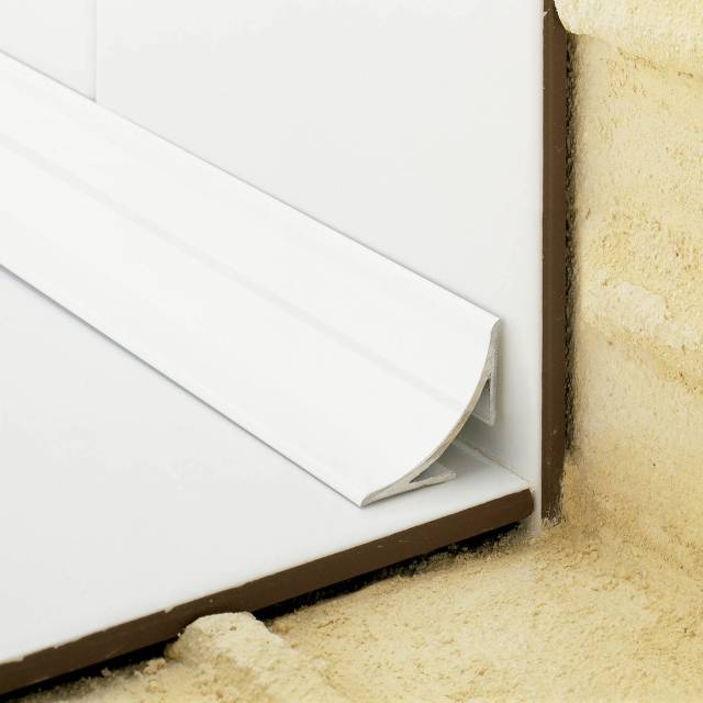 Novoescocia® 4 PVC es un perfil con geometría en media caña, de amplia cara vista, fabricado en extrusión de PVC color blanco.
