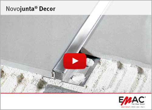 Novojunta® Decor Aluminio es una solución para junta de dilatación fabricada en aluminio natural o anodizado color plata mate, con un cuerpo central de caucho EPDM.