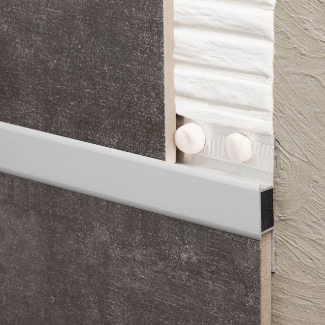 Solución para junta de dilatación compuesta por un cuerpo central de caucho EPDM y dos perfiles de aluminio anodizado, actuando uno de ellos como embellecedor de la cara vista. De esta forma, a la vez que permite absorber los movimientos del pavimento, embellece la separación creada.