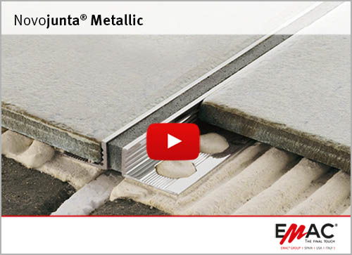 Novojunta® Metallic permite el pulido del suelo tras su instalación. Disponible en colores negro, gris y marfil (hasta 30 mm de altura).
