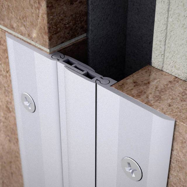 Esta junta de movimiento ha sido diseñada para su colocación en paredes y techos y para anchos de junta de hasta 30 mm. Movimiento admitido +/- 4.7 mm. (movimiento total 9.4 mm.) Diferencia vertical admitida: 5 mm. Se sirve totalmente montada con film protector en la superficie.