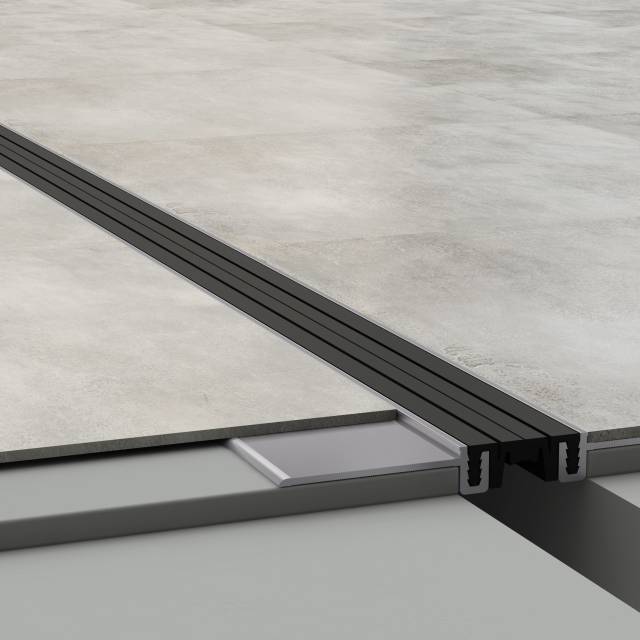 Junta con 3 mm de altura, diseñada para colocación con suelos de bajo espesor como pavimentos vinílicos o moquetas.