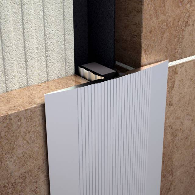 Perfil tapajuntas fabricado en aluminio anodizado para su colocación en juntas estructurales tanto en pavimentos como en revestimientos.