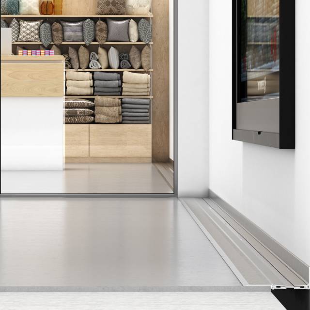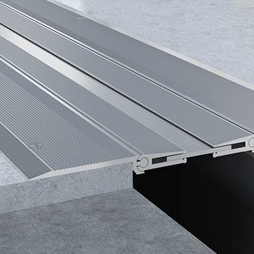 Su diseño, con piezas deslizantes, le capacita para absorber movimientos multidireccionales. El perfil se atornilla sobre el pavimento ya terminado y, gracias a su diseño, permite el tránsito suave y sin resaltos.