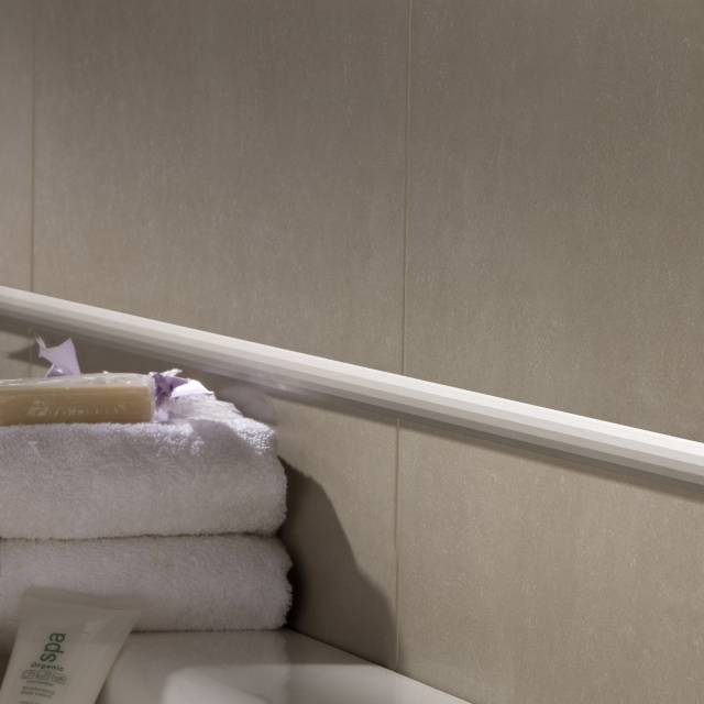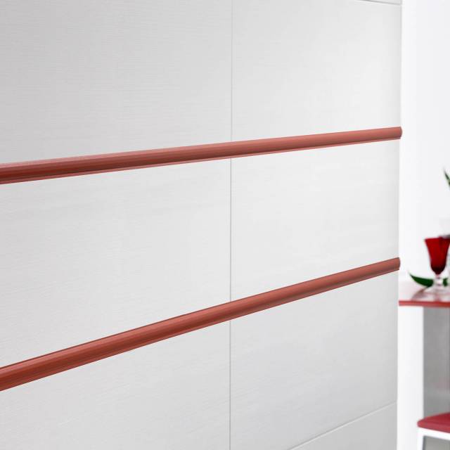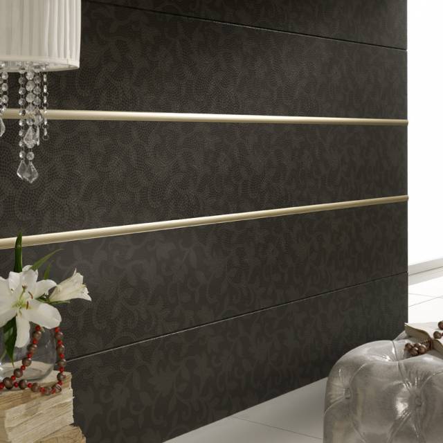 Exclusivo listel decorativo fabricado en aluminio de cara vista sinuosa e insólitos acabados que provocan delicados reflejos con la luz.