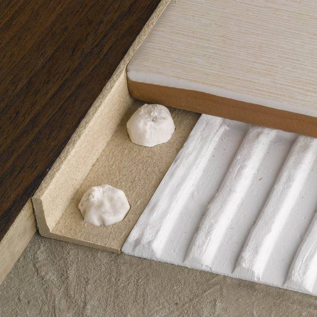 Perfil de sección en ángulo recto diseñado para su colocación como protector de esquinas en paredes alicatadas o separador de pavimentos.