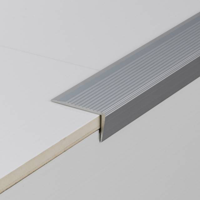 Perfil metálico para remate de escalones, que cubre o evita desperfectos.