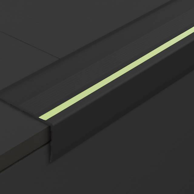 Remate para peldaños con banda fotoluminiscente que ayuda al cumplimiento de las normativas más exigentes en materia de señalización de emergencia. Dispone además de superficie antideslizante, y se coloca después del alicatado. Ideal para lugares públicos con mucho tránsito.