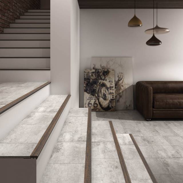 Con superficie antideslizante y apto para exteriores. Disponible en medidas de 10 y 12 mm, y en los siguientes acabados: marrón vintage, blanco vintage y gris vintage.