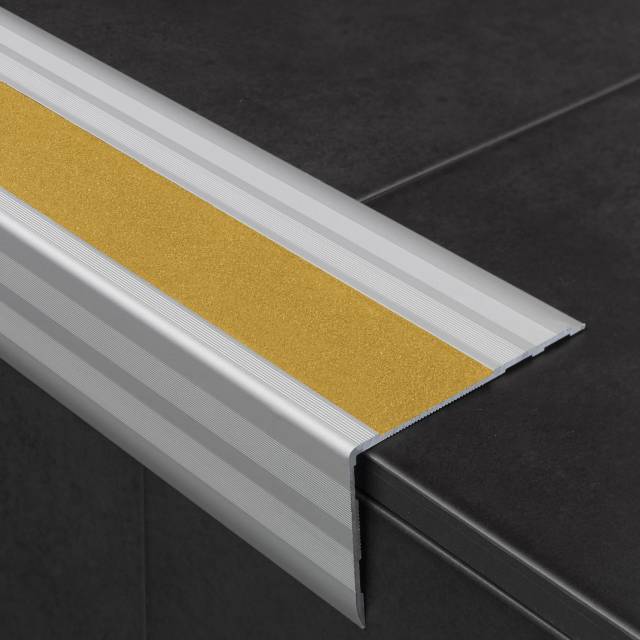 | NPSFAL65AM | Aluminio + Banda antideslizante | 65mm. | 40 mm. | 30mm. | Anod. plata mate + banda amarilla | 1 / 2,5 m. | 10 u. |