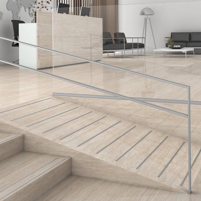 Novostrip SP es un perfil fabricado en extrusión de aluminio para su colocación en escaleras, rampas o zonas de paso de todo tipo de revestimientos en las que se quiera incrementar la seguridad frente a caídas.