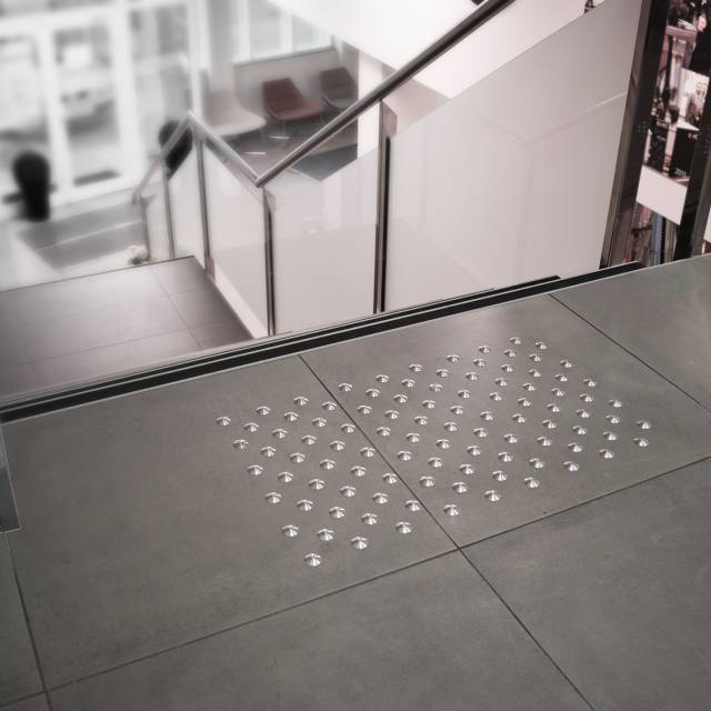 Los botones podotáctiles Novotop Access Aluminio han sido diseñados como solución de advertencia para identificar zonas con obstáculos, o áreas donde existe un cambio de altura o abertura sin protección, tales como escaleras y plataformas abiertas.