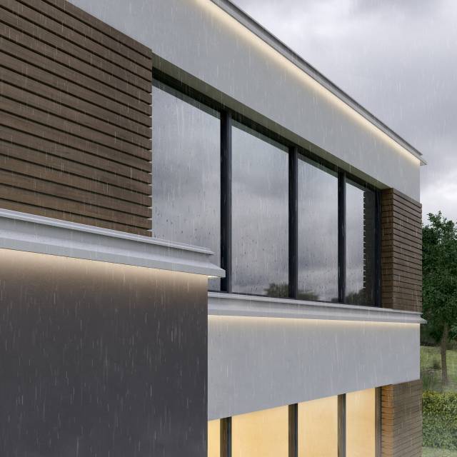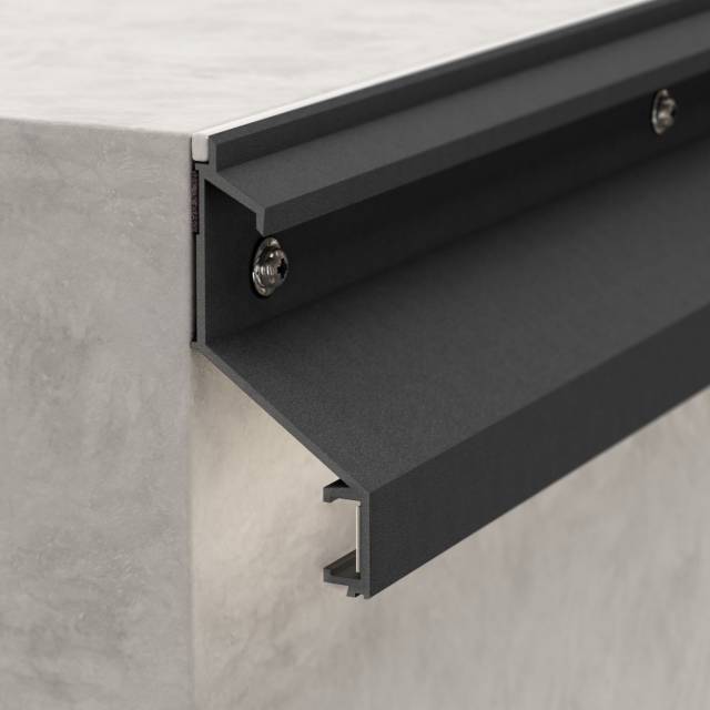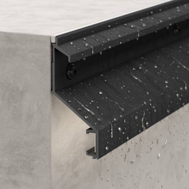 El sistema cuenta con doble método de impermeabilización para evitar la filtración de agua a través del perfil. En su parte inferior el perfil dispone de un hueco donde de forma opcional puede instalarse una tira LED, lo que le confiere un alto poder decorativo. Para completar la funcionalidad del sistema, están disponibles los complementos de terminación (ángulo, tapa y unión).